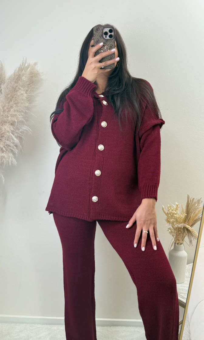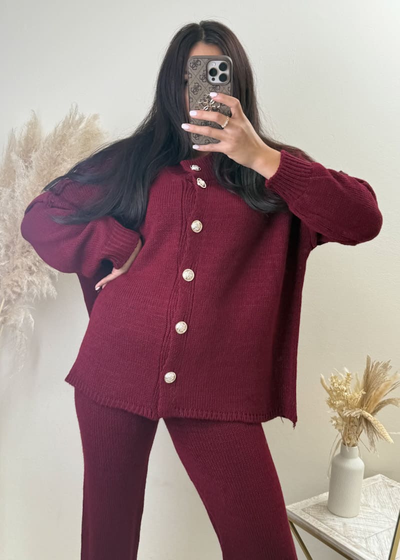 Ein kuschelweiches, leicht oversize geschnittenes Set mit eleganten Goldknöpfen – perfekt für den Winter und ideal für gemütliche Alltagslooks.