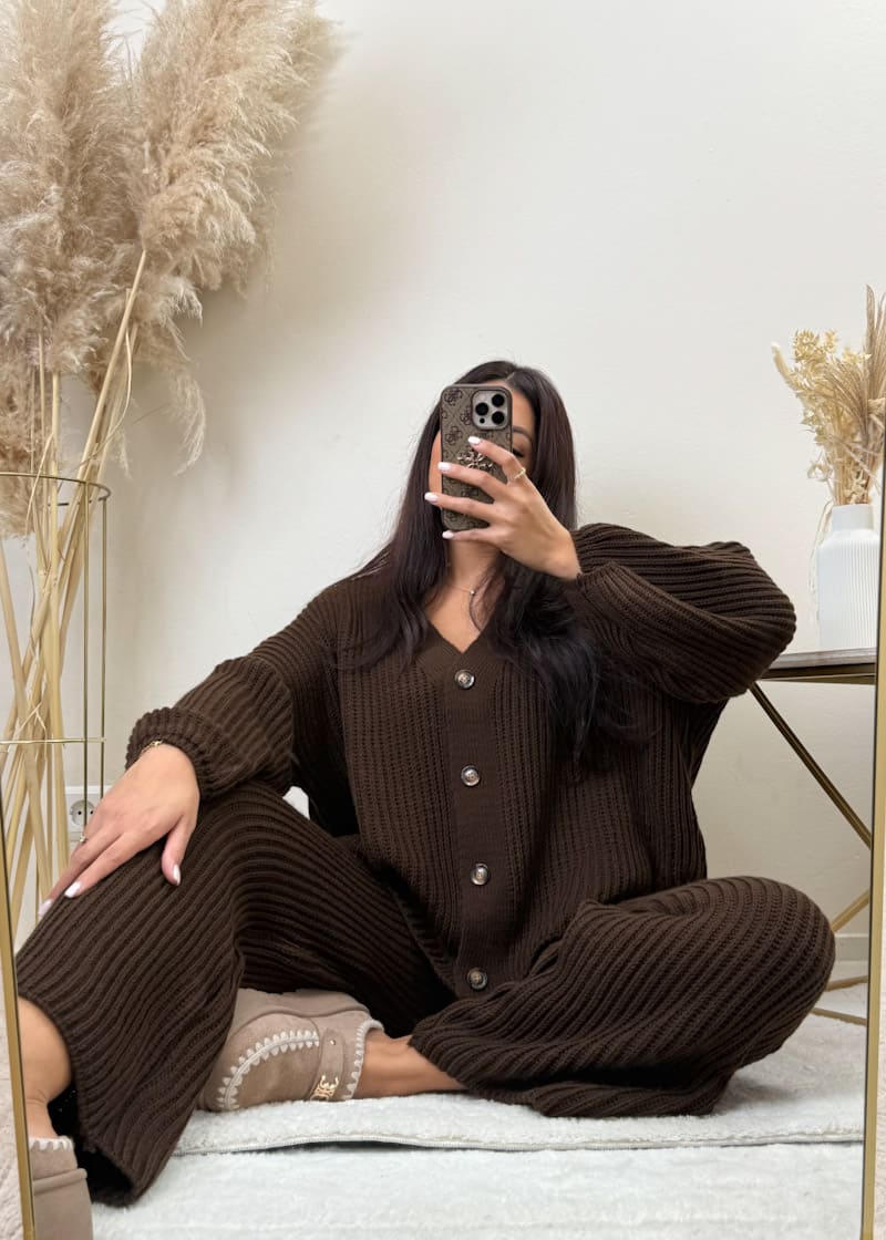 „Ich bin total verliebt in mein Strick-Set. Der Cardigan ist unglaublich weich und die Hose passt perfekt – es ist mein Favorit für entspannte Tage im Winter. Absolute Kaufempfehlung! – Fiola O.“